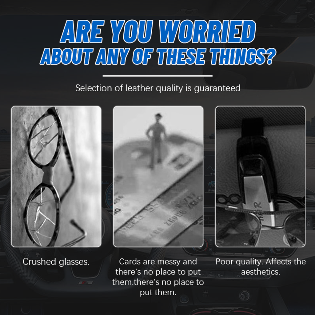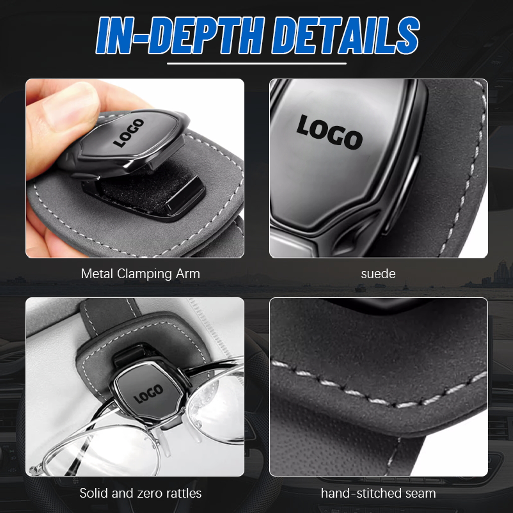 Made of quality aluminum alloy and leather, the glasses clip is more textured and durable; It will not slide or damage the sun visor, sturdy and practical, making storage easy.